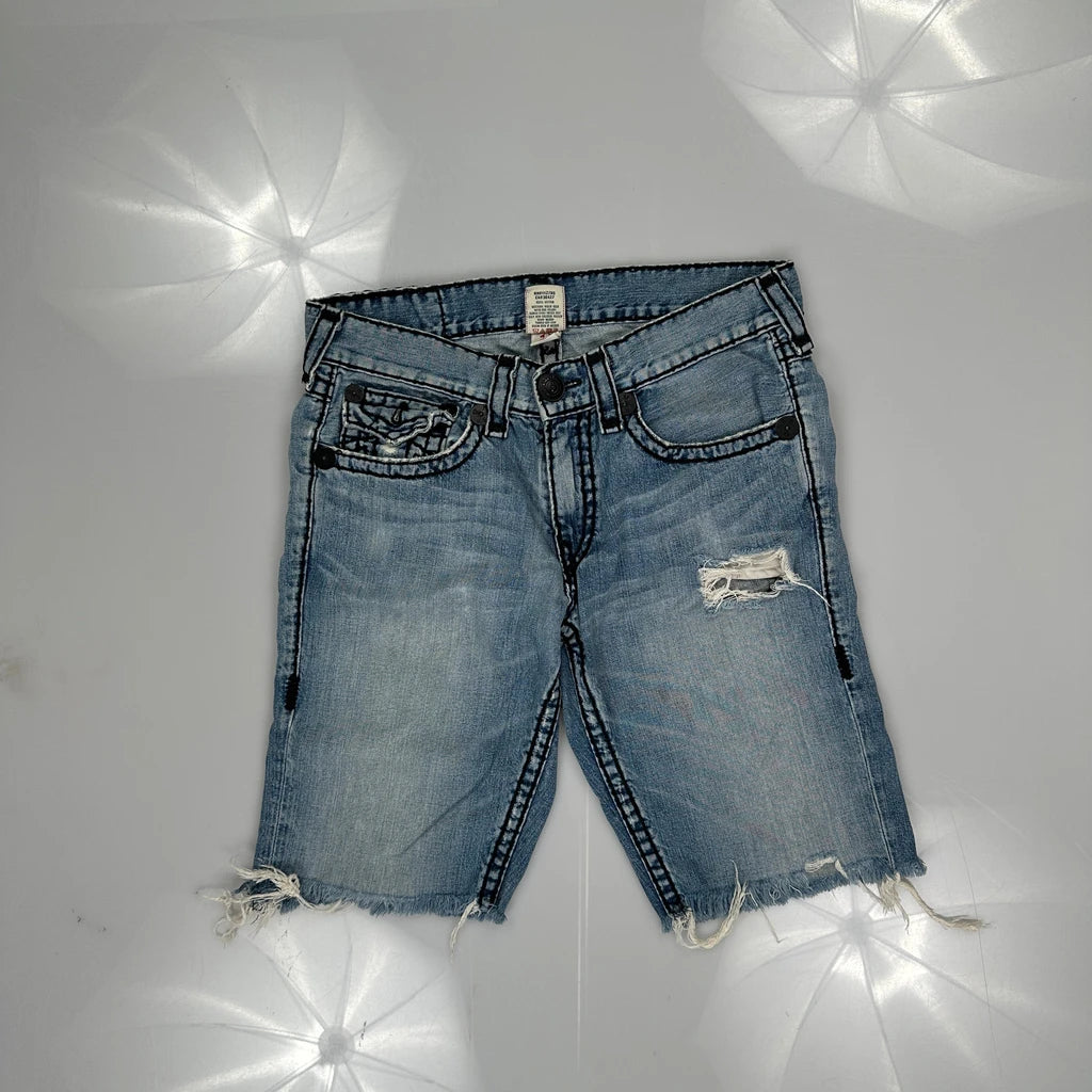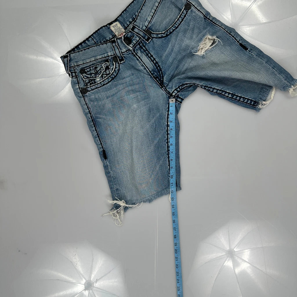 True Religion Denim Shorts - 36W 11L Light Wash Cotton