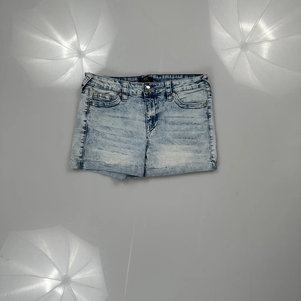 True Religion Mini Denim Shorts - 29W UK 10 Light Wash Denim