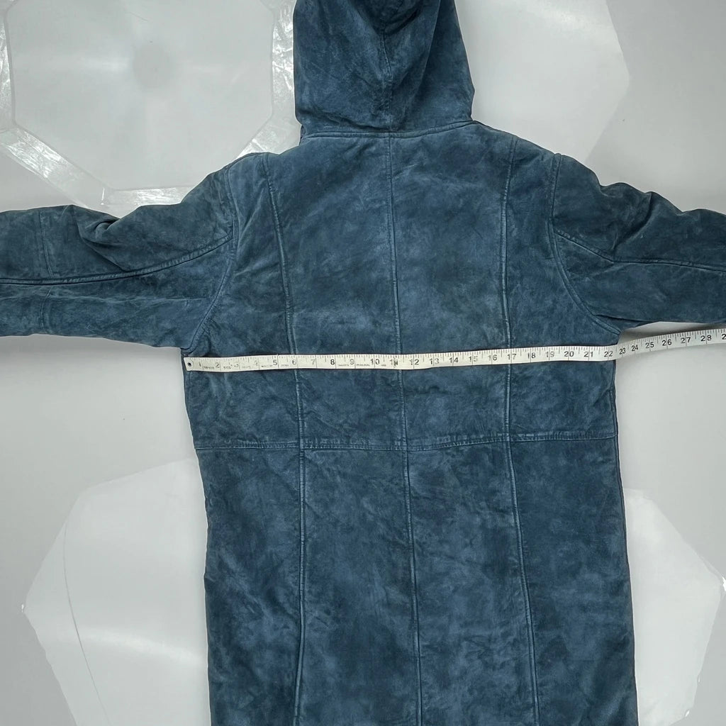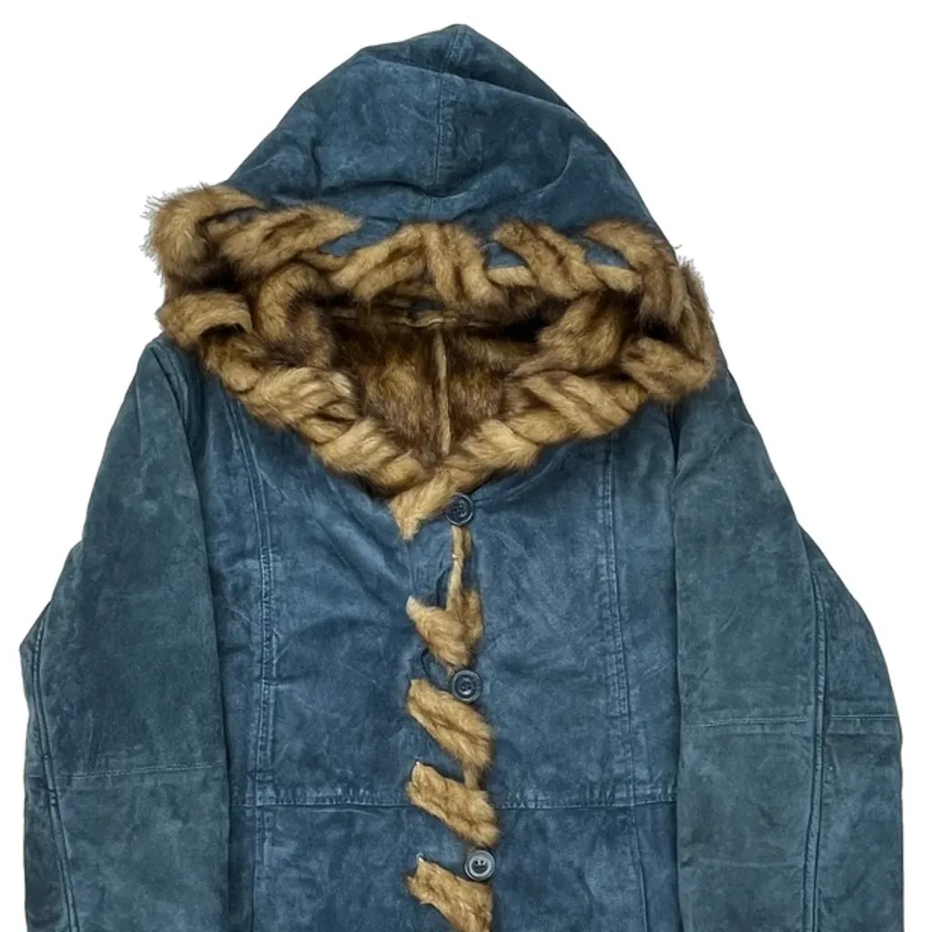 Blue Coat With Faux Fur Trim And Hood.