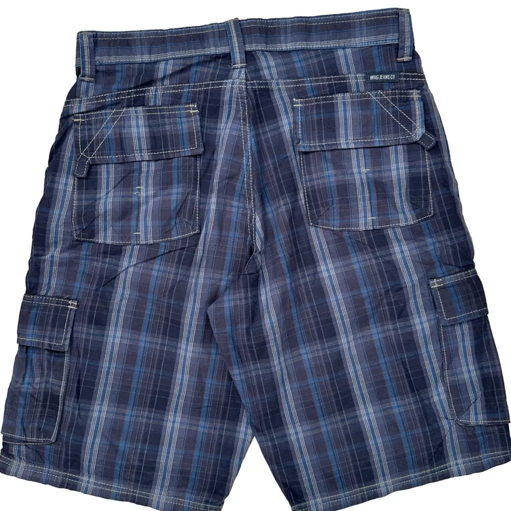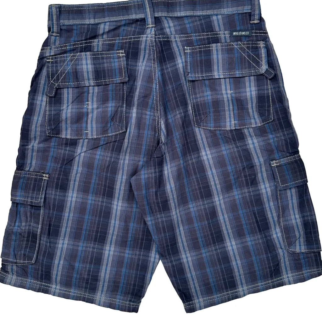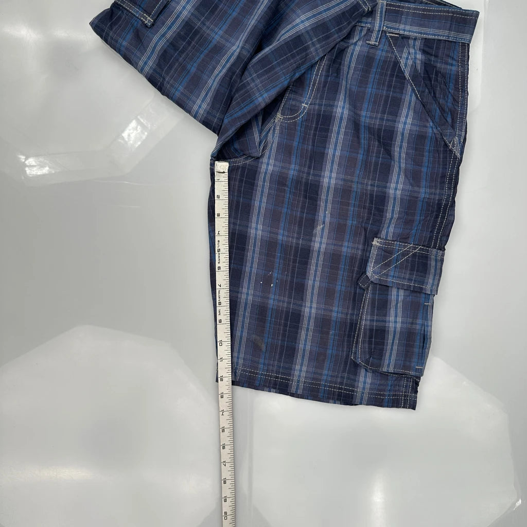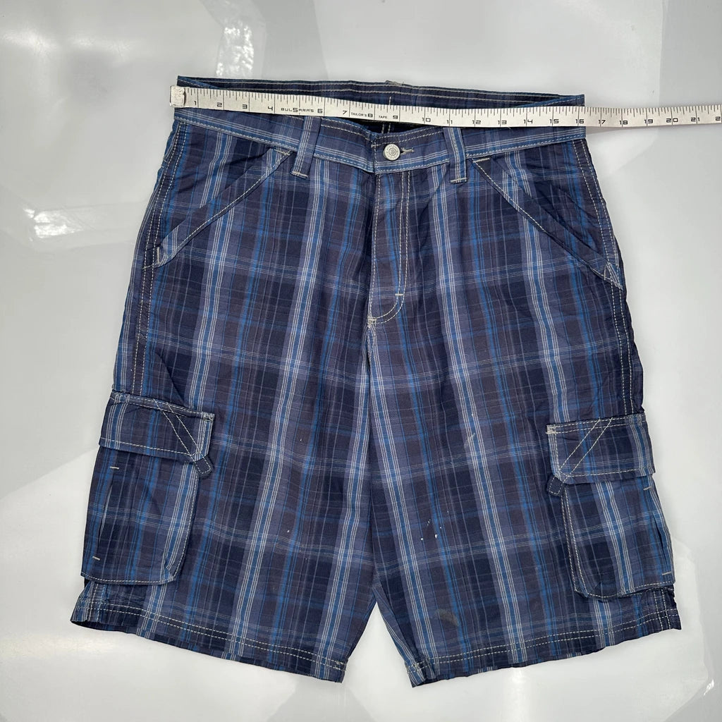 Unbranded Checked Cargo Shorts - 32W 10L Blue Cotton