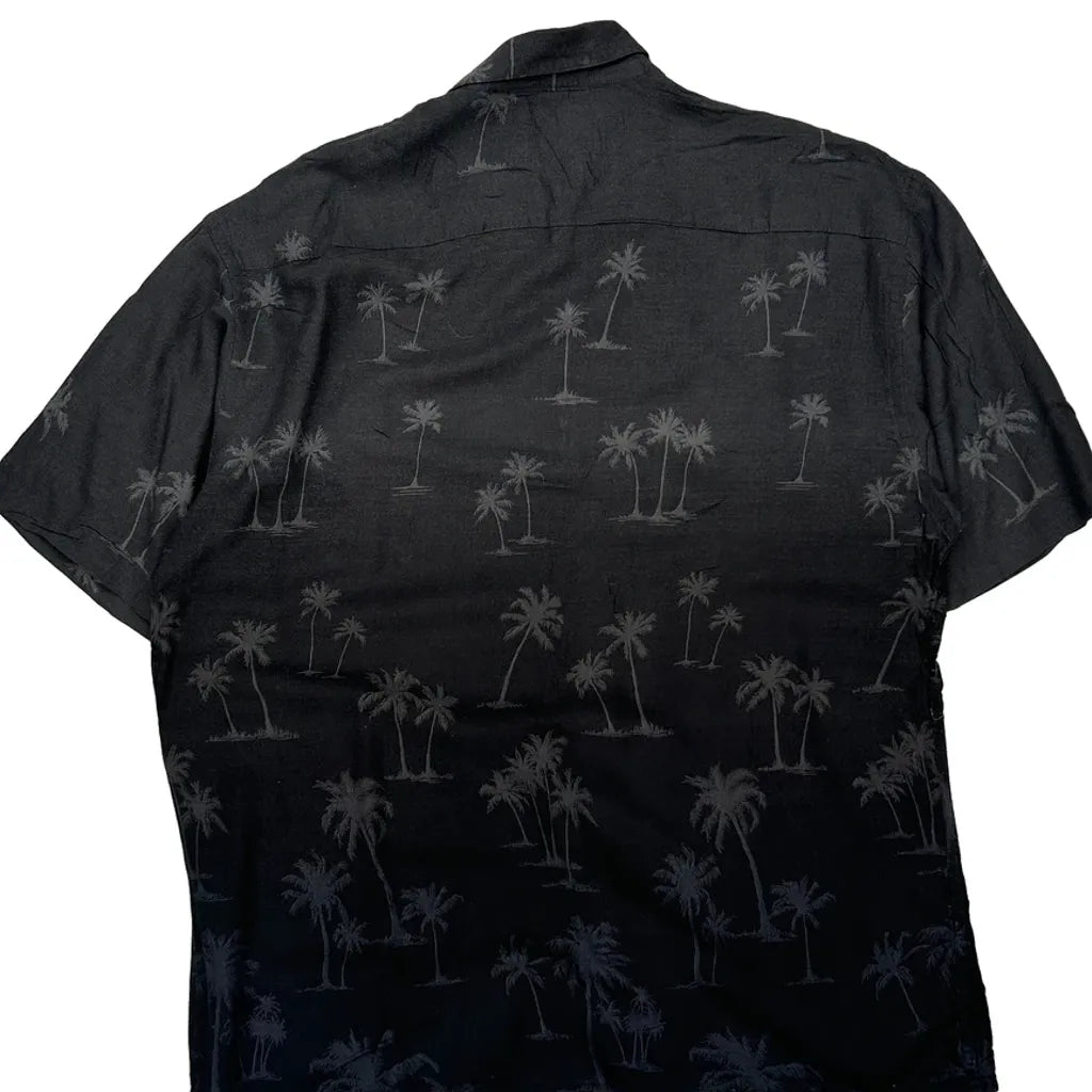 Van Heusen Hawaiian Shirt - Large Black Viscose
