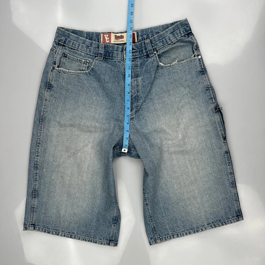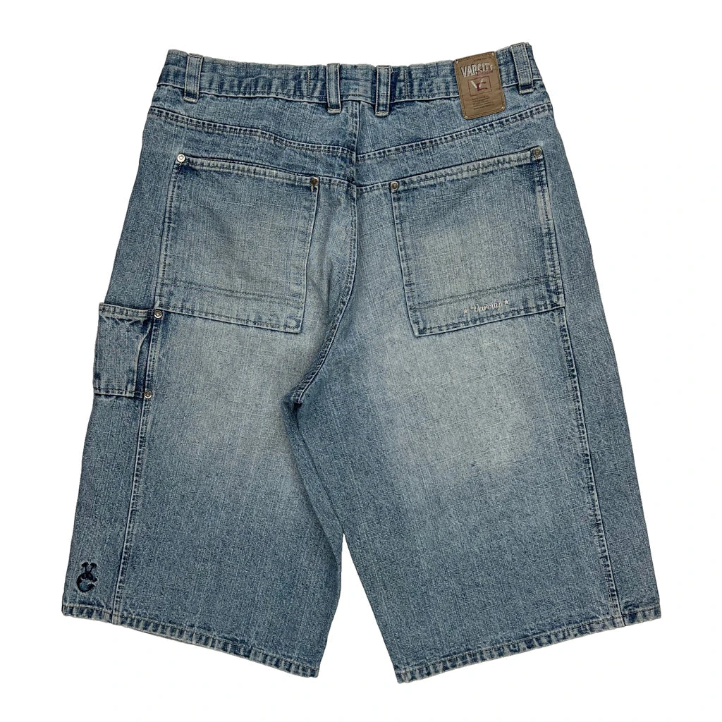 Varcity Hip Hop Denim Shorts - 36W 12L Blue Cotton