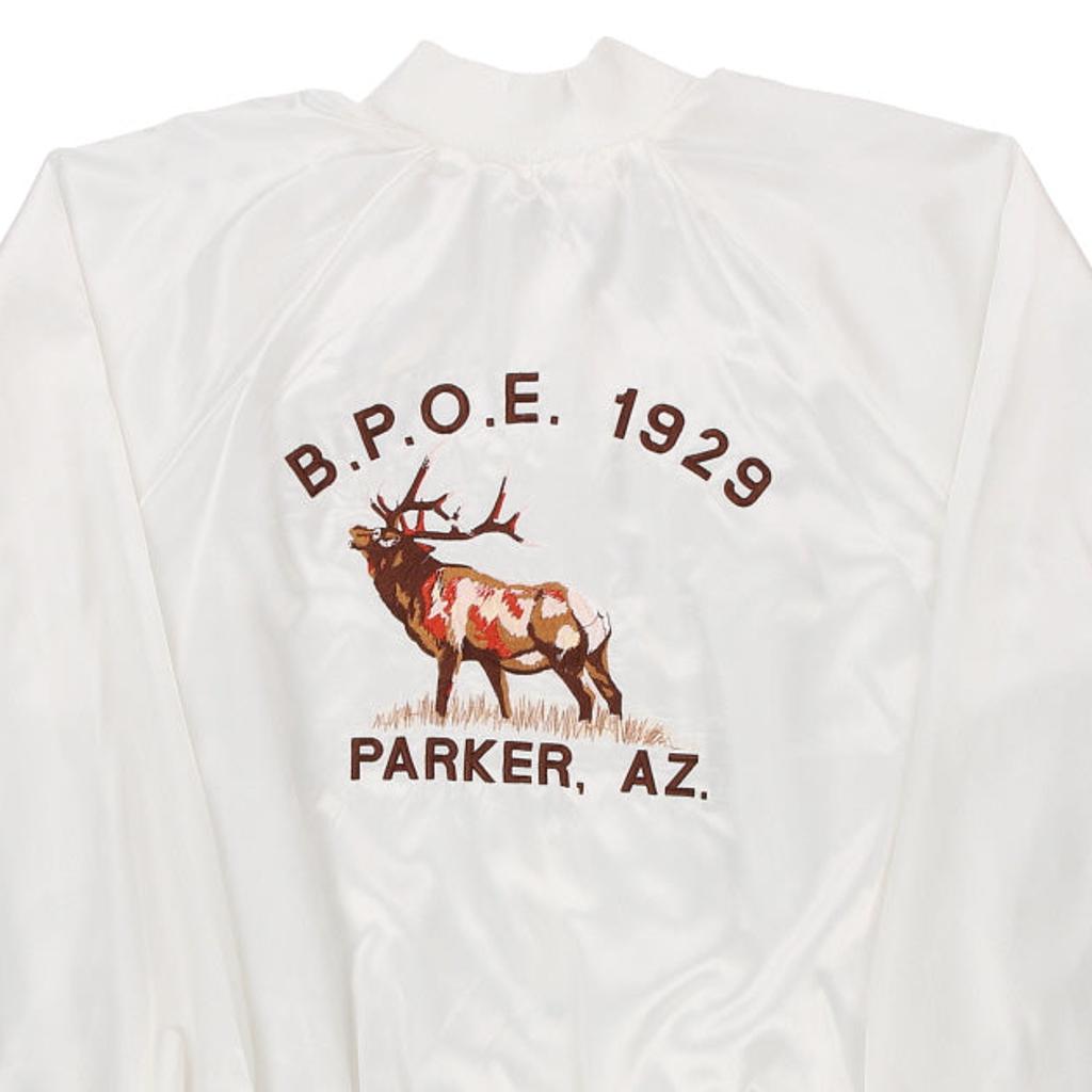 1980's Made in USA Parker, Arizona Auburn Graphic Varsity Jacket - XL White Polyester Blend