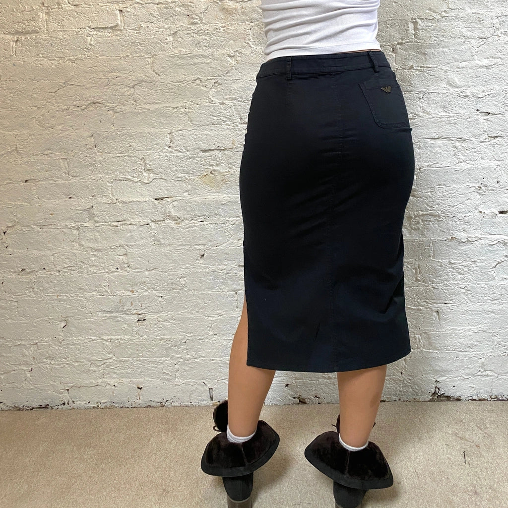 Vintage Armani Jeans navy midi skirt, fits a UK size 14.
