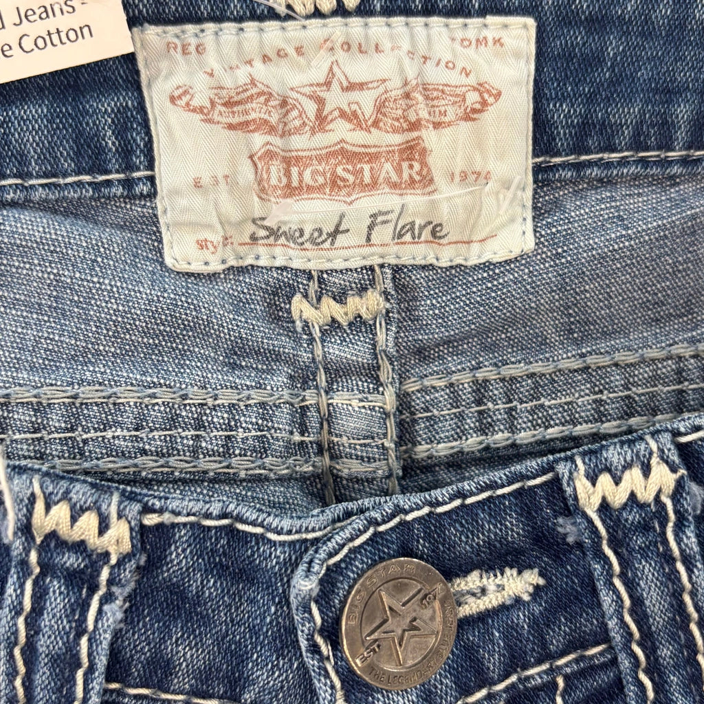 Big Star Flared Jeans - 29W UK 6 Blue Cotton