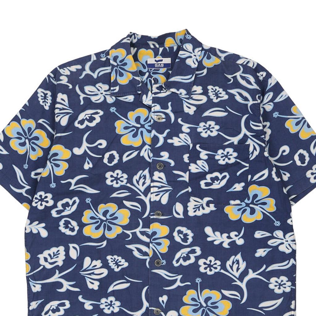 Gas Floral Hawaiian Shirt - XL Blue Cotton