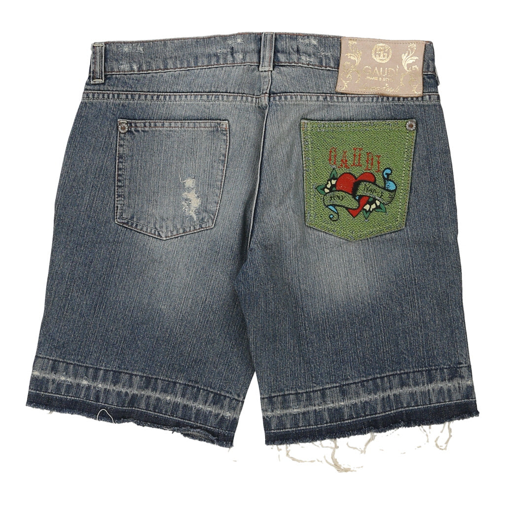 Gaudi Graphic Denim Shorts - 32W UK 10 Blue Cotton