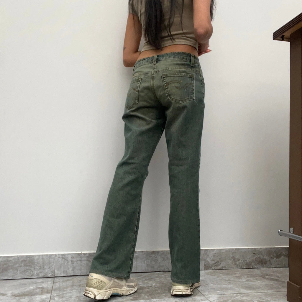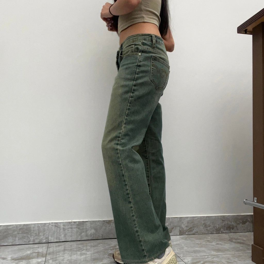 Vintage Miss 2&F Green Wash blue jeans, fit a UK size 8 - mid rise with a 29" waist.