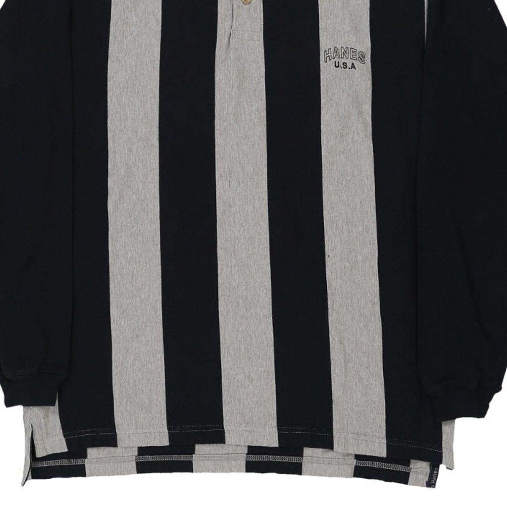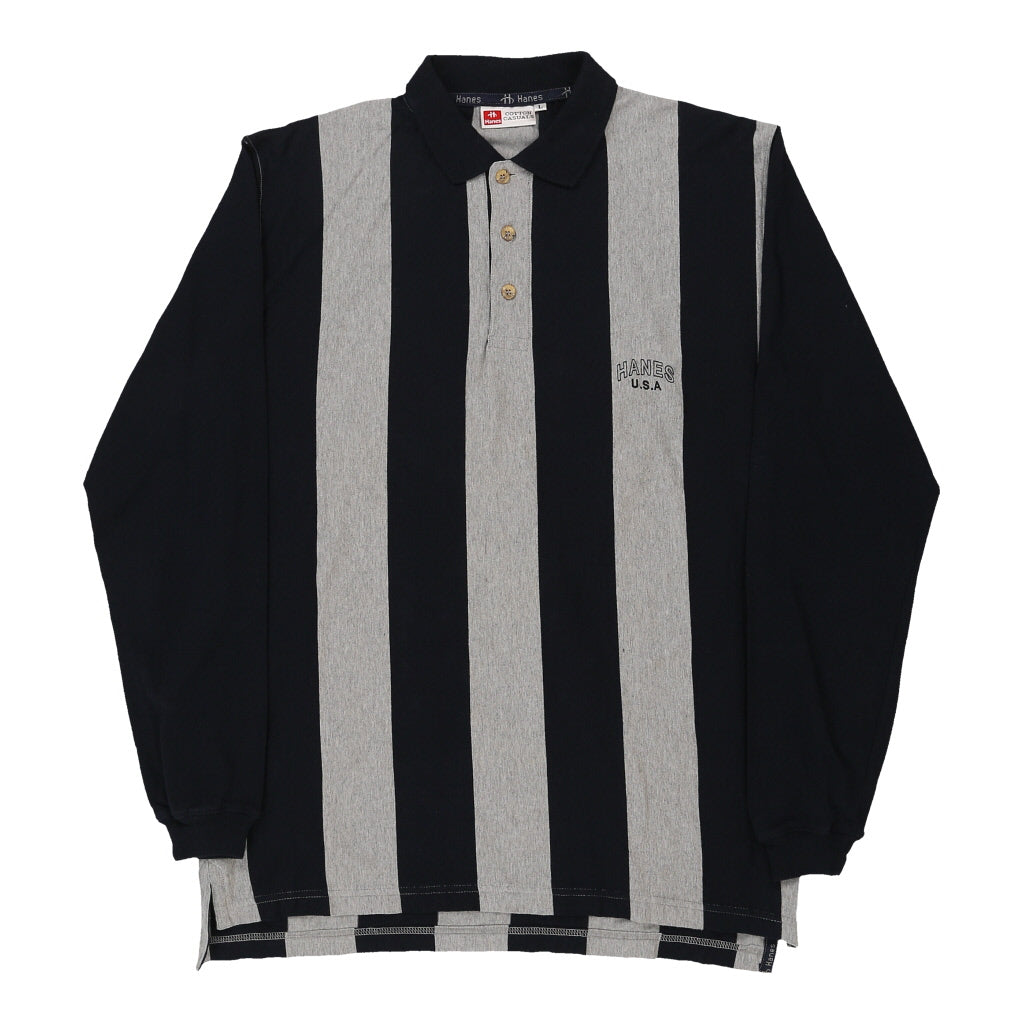 Hanes Striped Long Sleeve Polo Shirt - Large Black Cotton