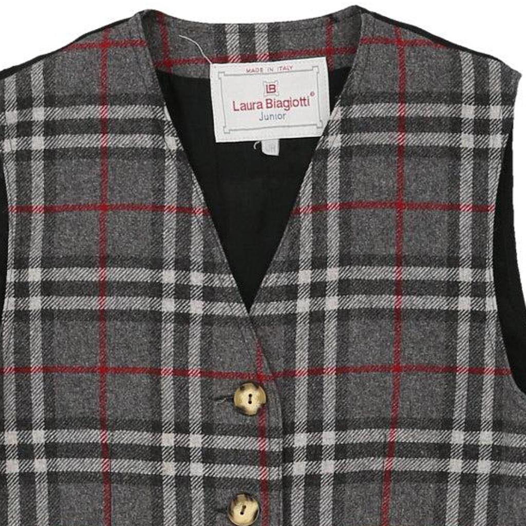 Junior Age 14 Laura Biagiotti Checked Waistcoat - Large Grey Wool Blend