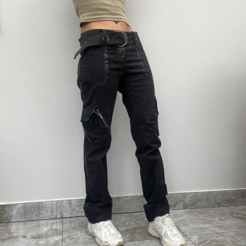 Vintage Lazzerini Tiziana black cargo trousers, fit a UK size 8 - low waisted with a 30" waist.