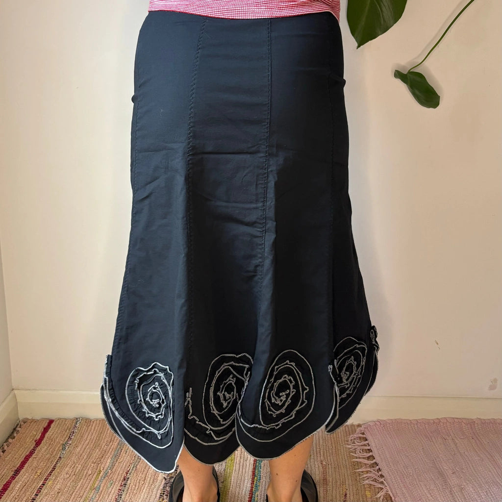 Le Piccinotti Embroidered Midi Skirt - 26W UK 6 Black Cotton