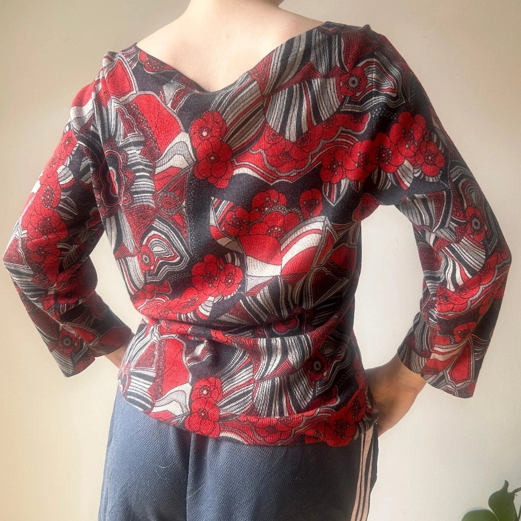 Les Copains Floral Jumper - Large Red Silk Blend