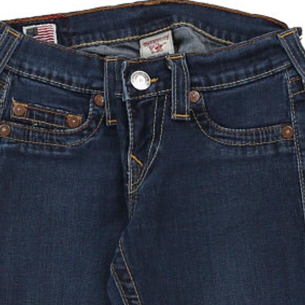 Vintage True Religion Made in USA Casey blue jeans, fit a UK size 4 - low waisted with a 26" waist.