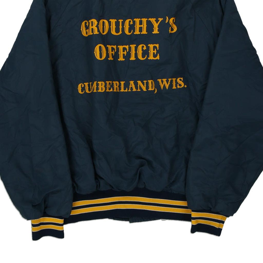 Vintage Made in USA Grouchy's Office navy Dunbrooke varsity jacket, fits medium.
