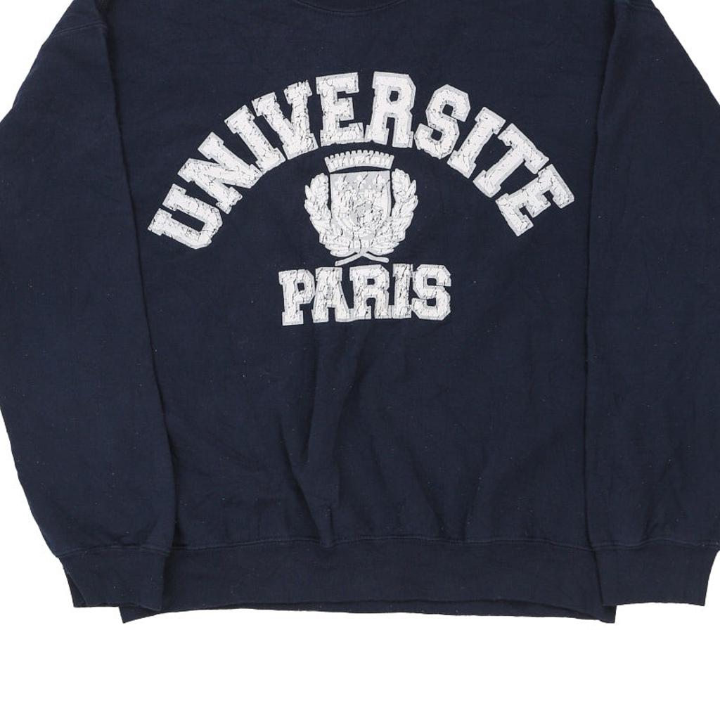 Paris Gildan College Sweatshirt - Large Navy Cotton Blend