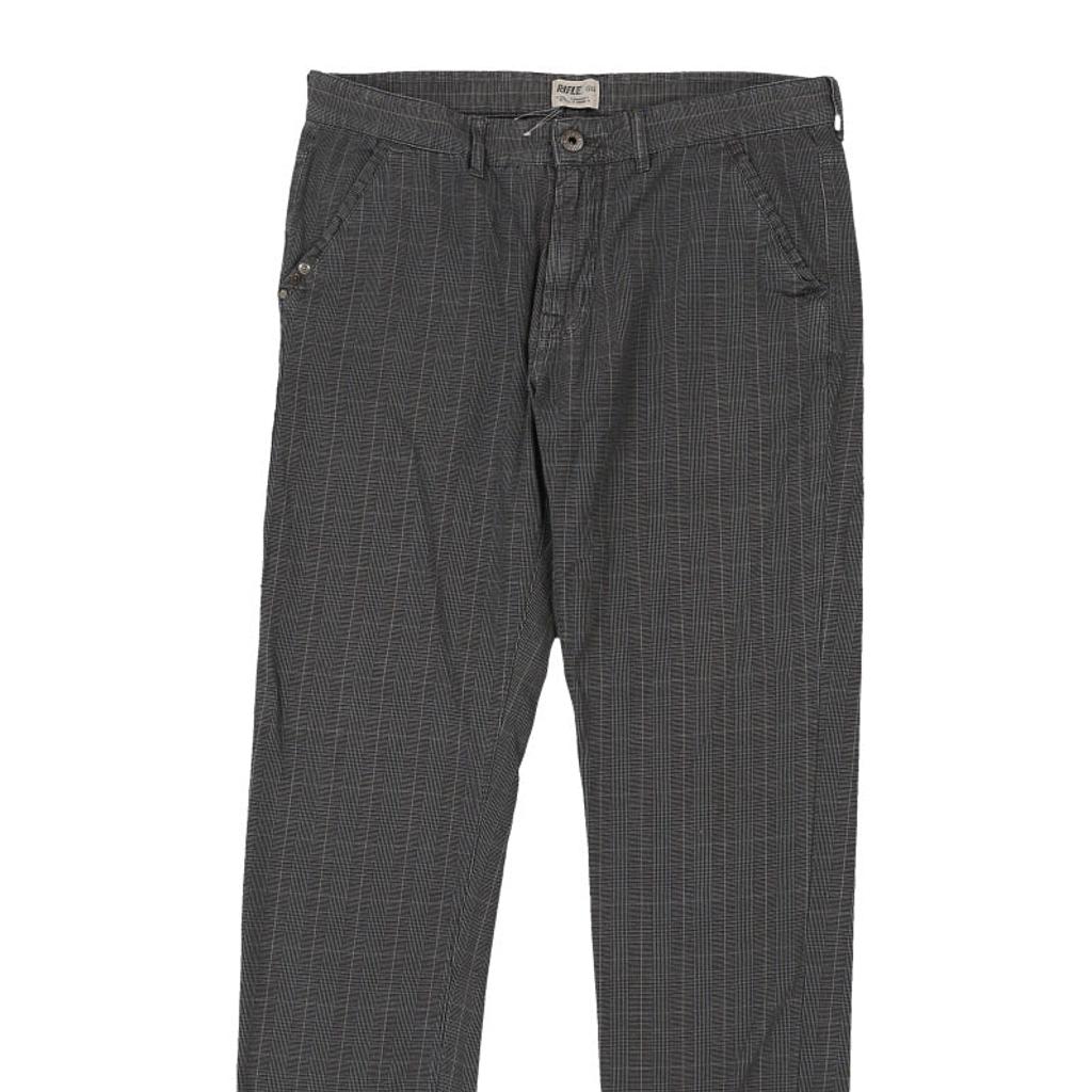 Rifle Checked Trousers - 36W 32L Grey Cotton