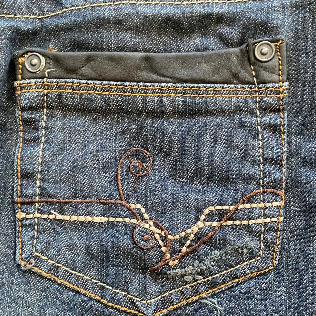 Notes: Leather trim on back pockets. Model Measurements: UK Size 6-8. Height: 5ft 6”, Bust: 30.5”, Waist: 26”, Hips: 30”, Inseam: 29”
