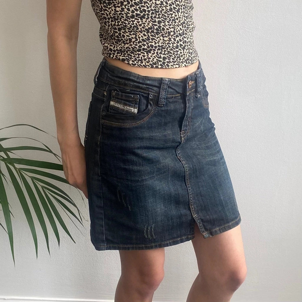Vintage Sexy Girl Jeans dark wash denim skirt, fits a UK size 8.