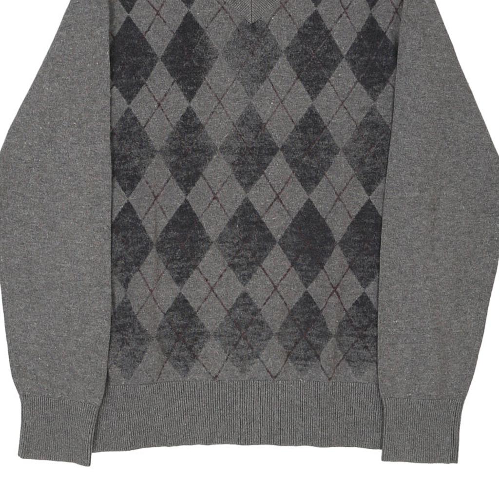 Tommy Hilfiger Argyle Jumper - Large Grey Cotton
