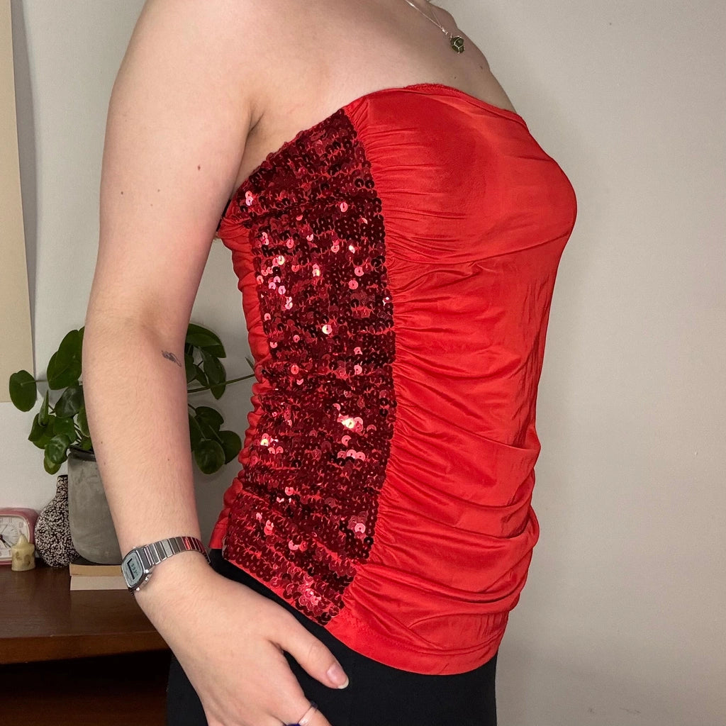 Vintage red Unbranded strapless top, fits small.