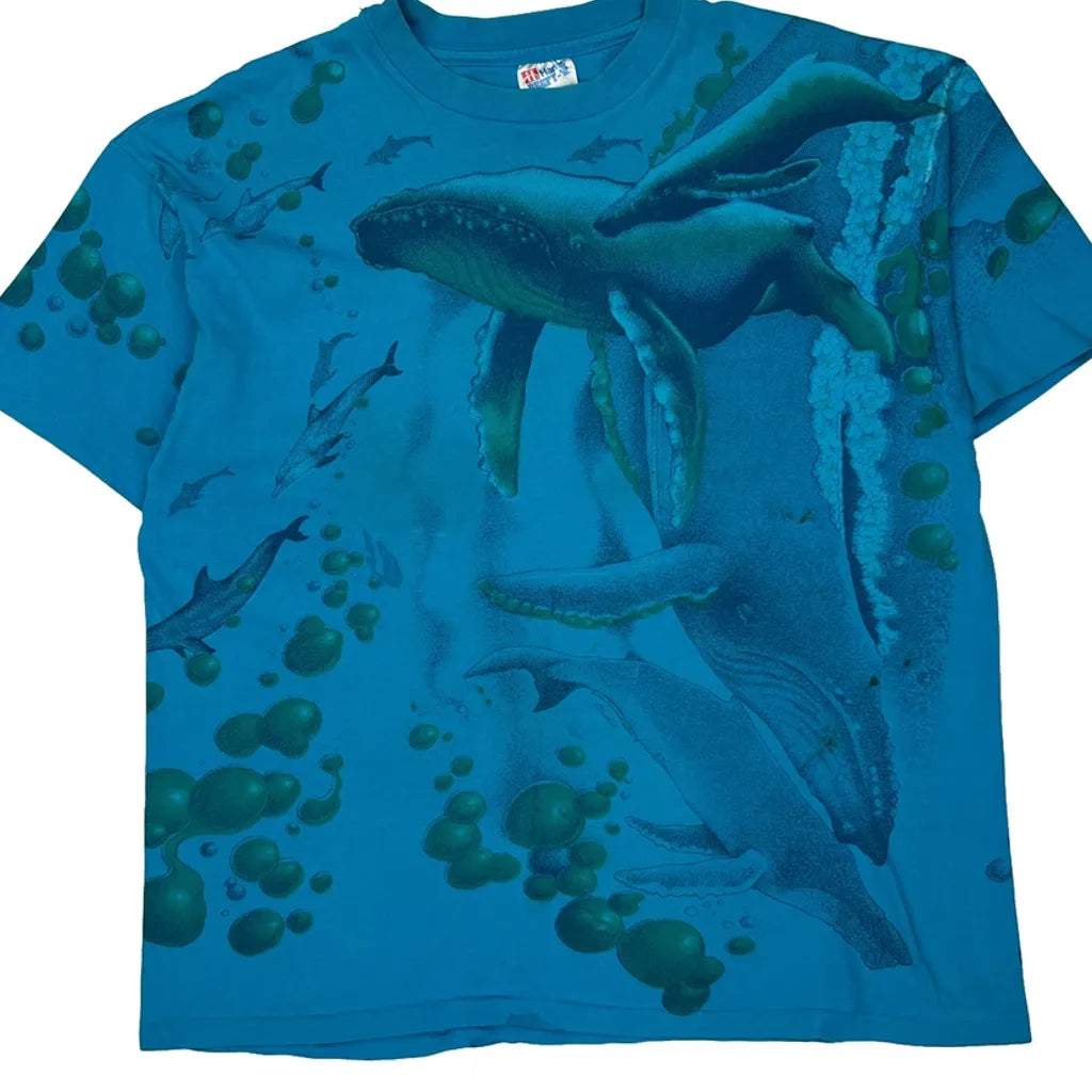 Whale Graphic Hanes Graphic T-Shirt - XL Blue Cotton
