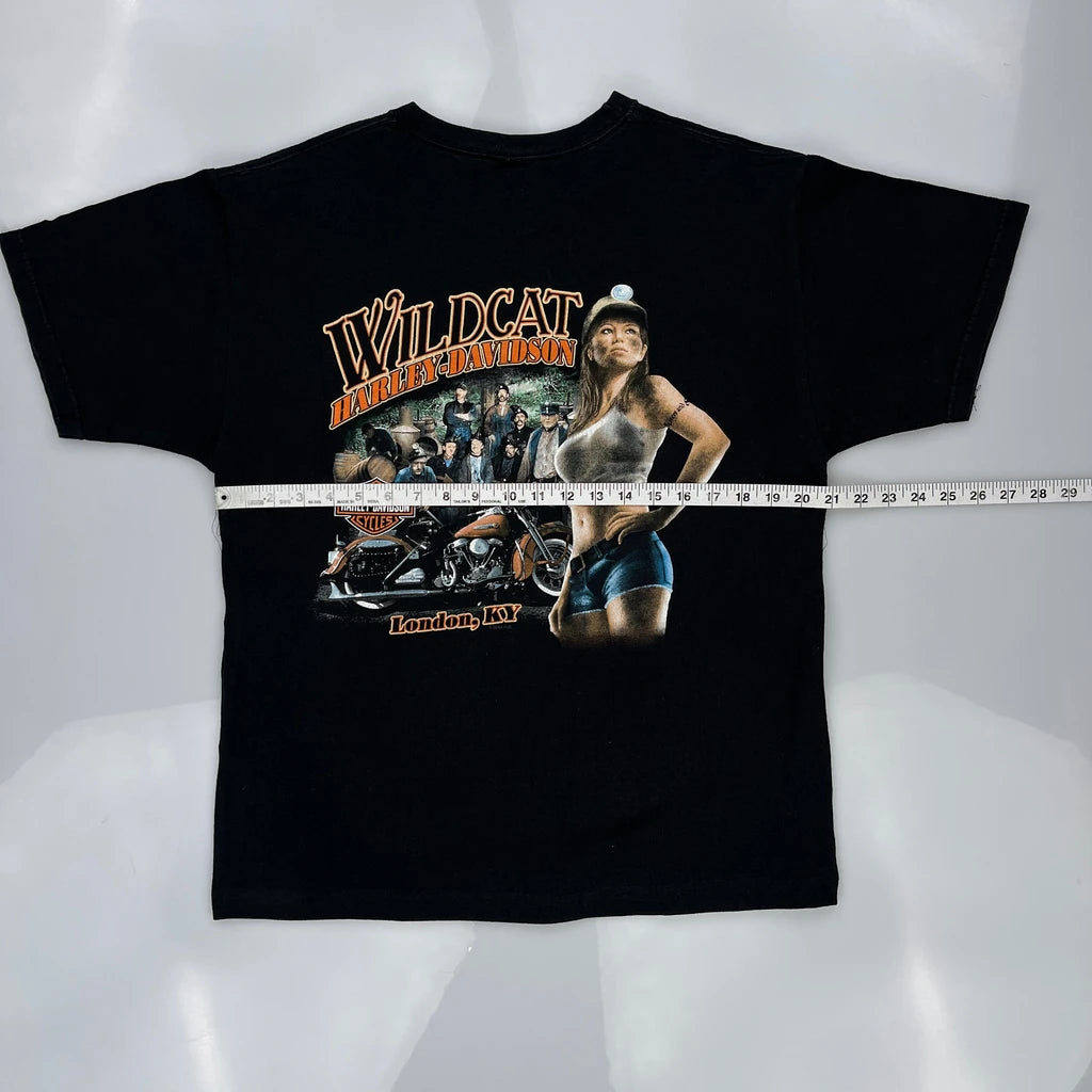 Wildcat Harley Davidson Graphic T-Shirt - Medium Black Cotton