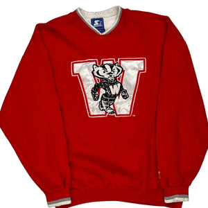 Wisconsin Badgers Starter College Sweatshirt - Large Red Polyester Blend