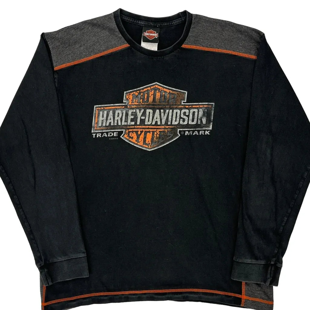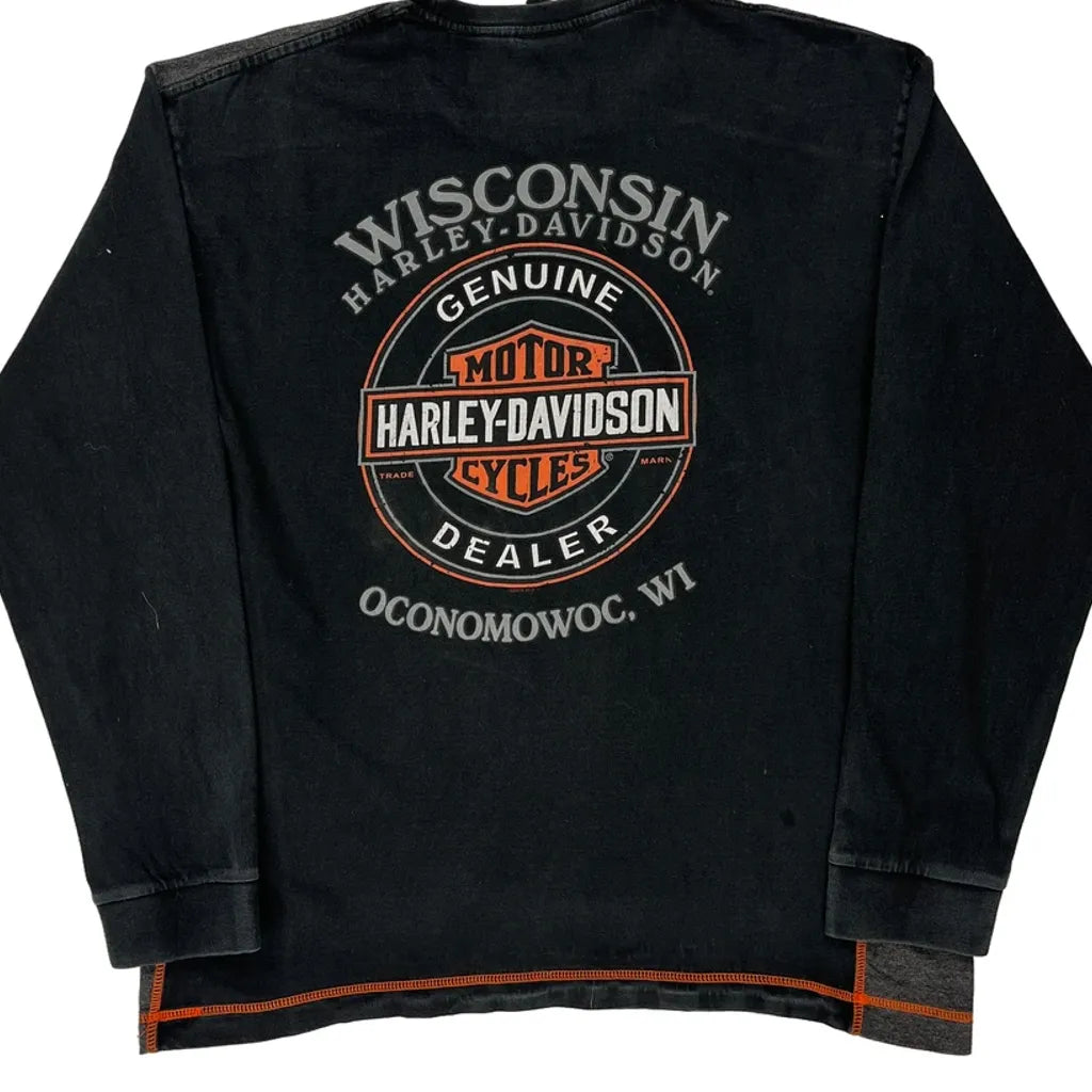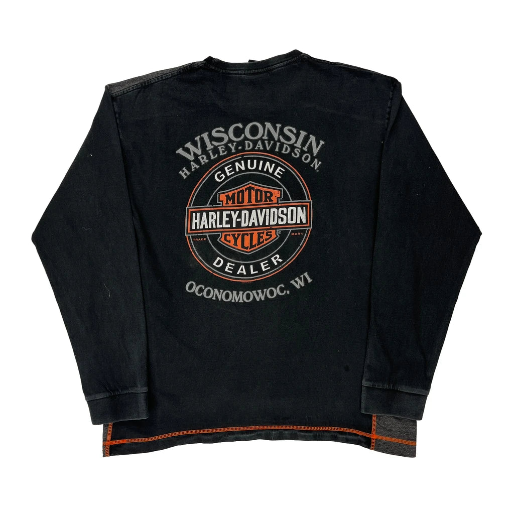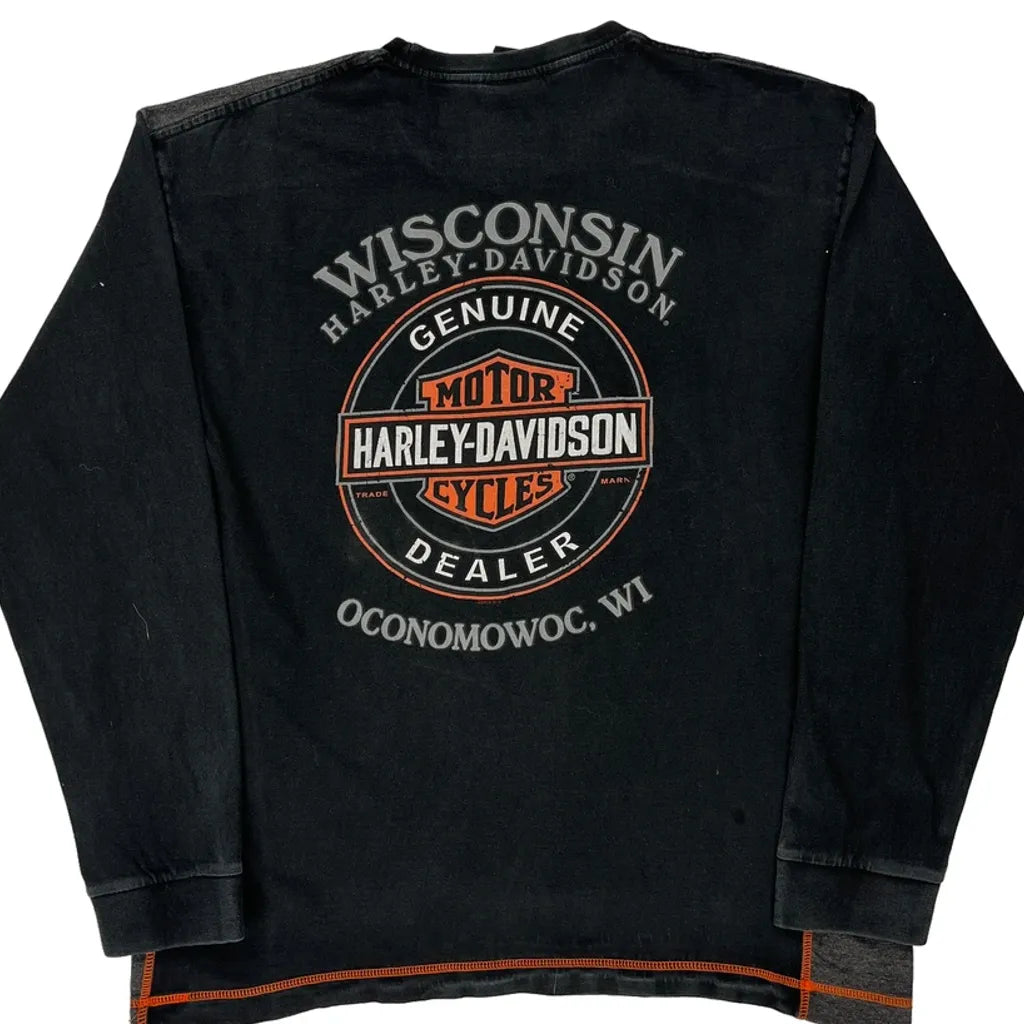 Wisconsin Harley Davidson Graphic Long Sleeve T-Shirt - Large Black Cotton