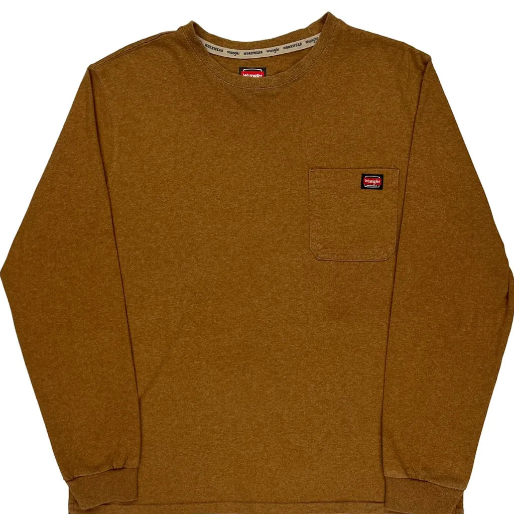 Workwear Wrangler Long Sleeve T-Shirt - Large Brown Cotton