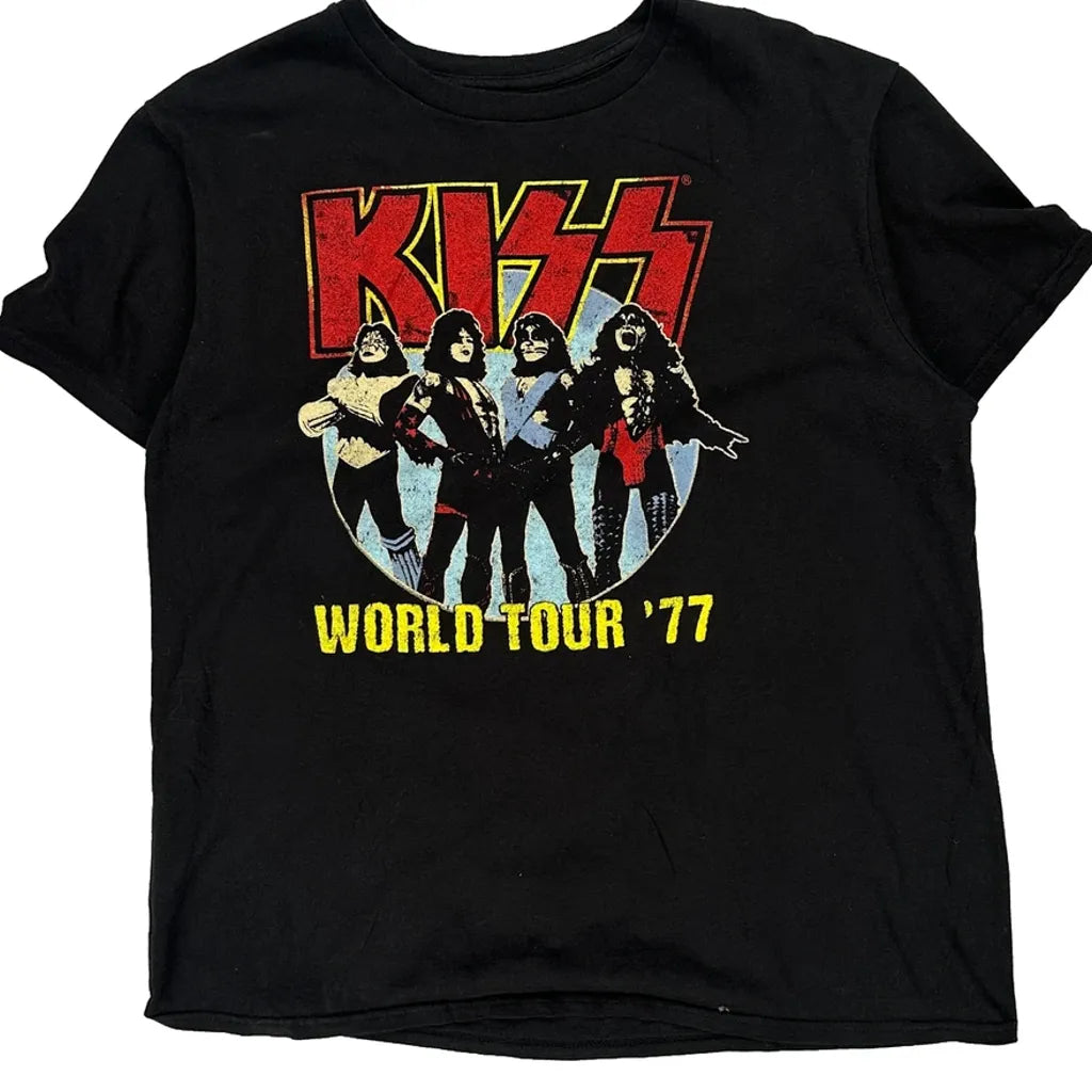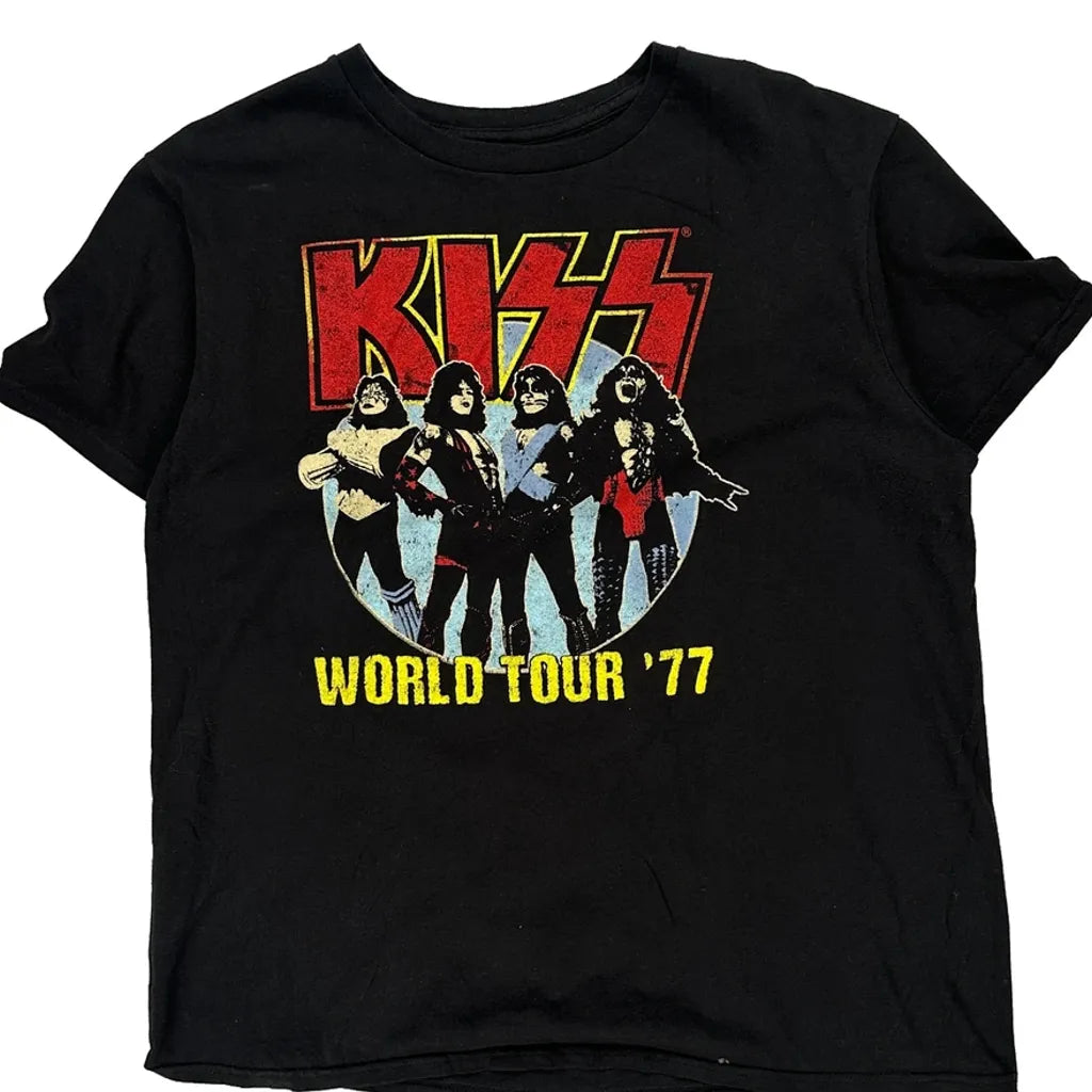 World Tour '77 Kiss Band T-Shirt - Large Black Cotton