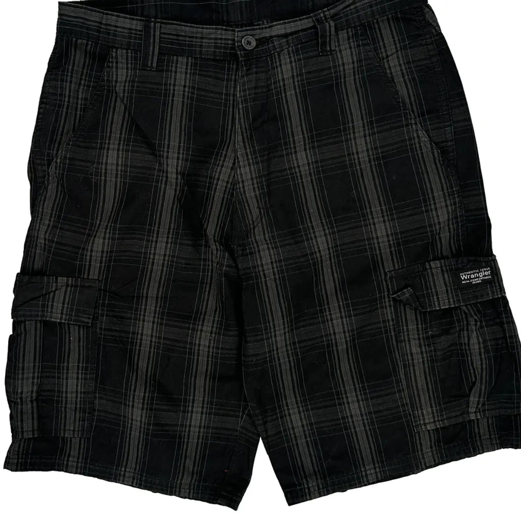Wrangler Checked Cargo Shorts - 35W 10L Black Cotton