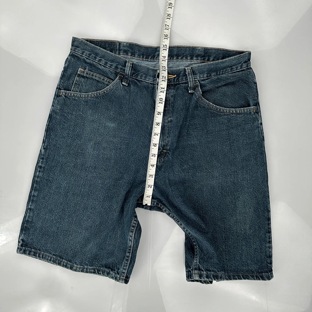 Wrangler Denim Shorts, fit a 33″ Waist and 9″ inseam.